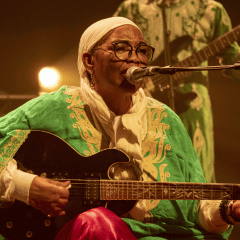 Première femme algérienne à jouer du guembri, instrument traditionnellement réservé aux hommes, Hasna El Becharia, surnommée « La Rockeuse du désert« , compte plus de 30 ans de carrière. Sa musique mêlant le sacré et le profane, fusionne des compositions originales avec les mélodies traditionnelles gnawi, incorporant des éléments tels que le moghrabi marocain, le raï déglingué et le blues griot.